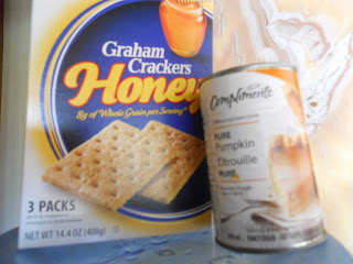 My mind started racing - couldn't we just freeze it in 1/3 cup portions so we could make more ice cream? How about some pumpkin muffins? It wasn't until HE offered to make the pie crust that I gave up my efforts to avoid the pie. I was almost resigned to blending flour with lard to make the perfect pie crust when it hit me... Graham Cracker Crust!! And we happened to have those on hand!